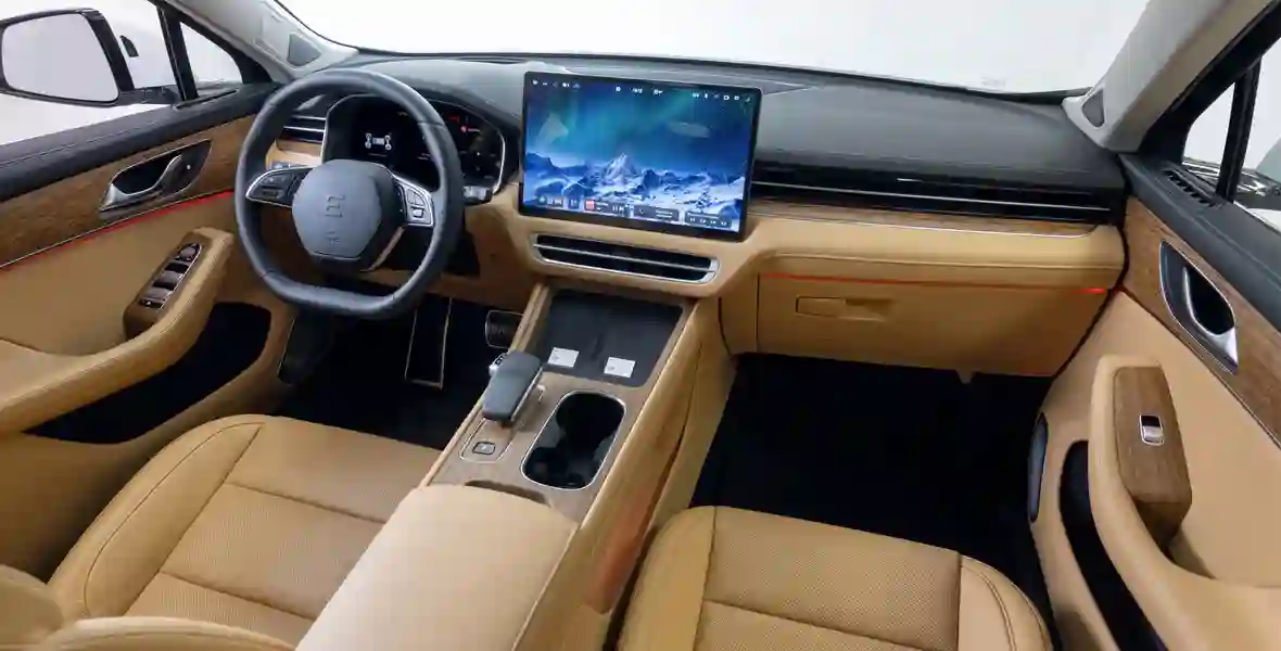 Если Seres Aito M5 имеет гибридную силовую установку, то EVOLUTE i‑JET — полностью электрический. В салоне можно долго искать кнопку, которая «включает» машину, потому что… её здесь нет. Чтобы кроссовер «проснулся», нужно лишь нажать на педаль тормоза. Но сидеть все так же удобно, перед глазами — информативный экран приборного щитка с качественной русификацией, а на центральной консоли — огромный «телевизор» для управления всеми системами электромобиля.
